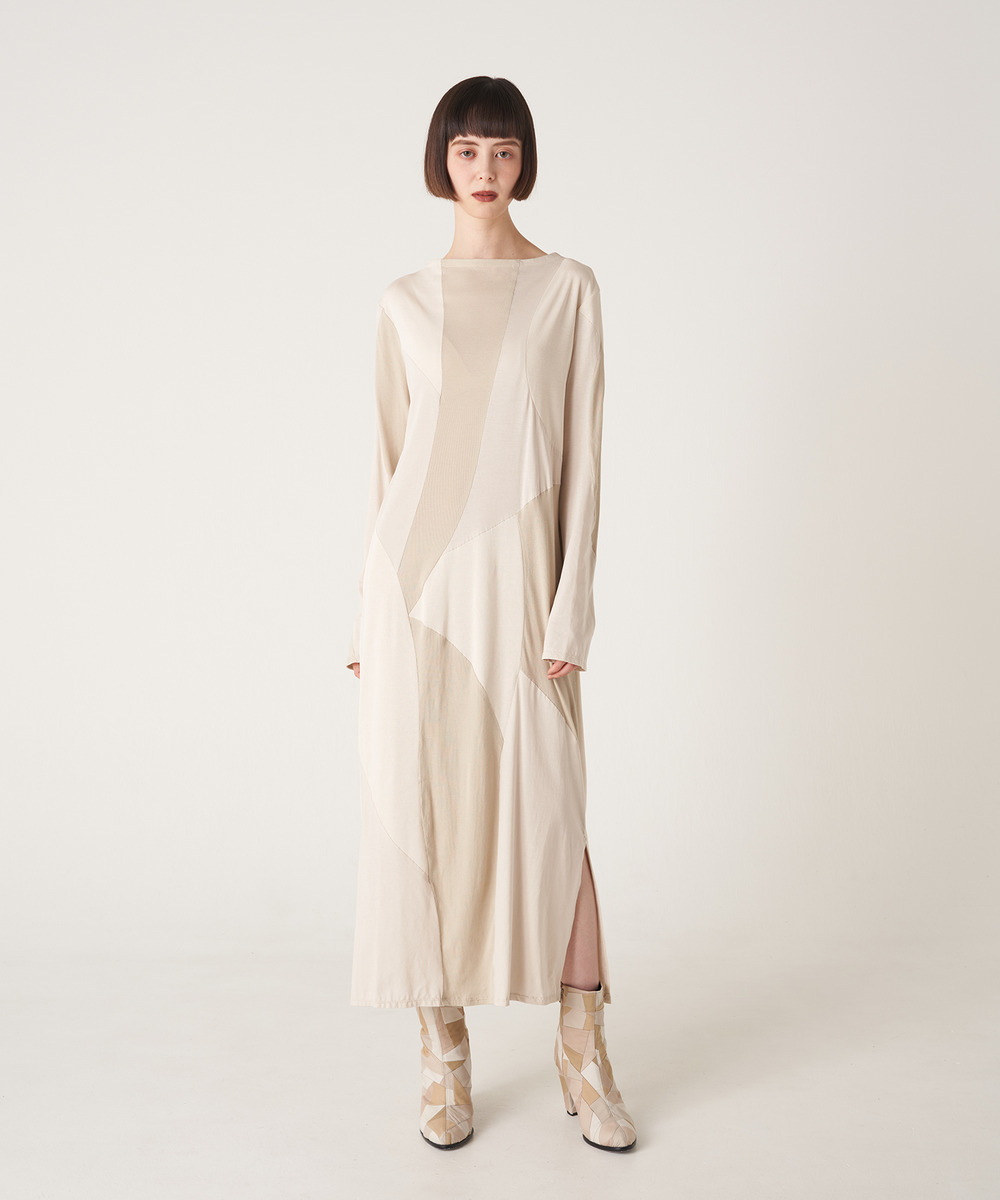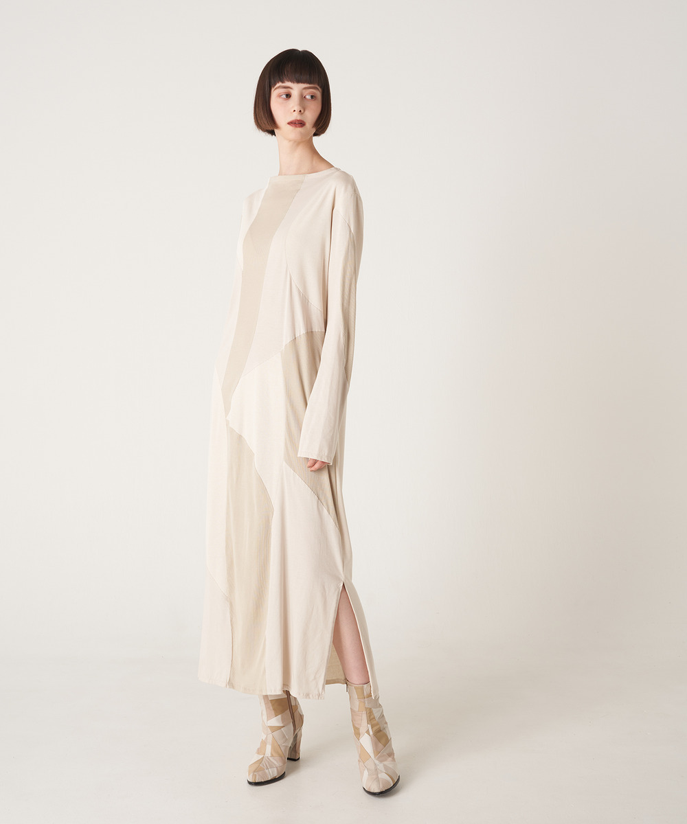 アンリアレイジの直線的なパッチワークをカーブさせ、身体に馴染むようなテキスタイルが特徴のCut-and-sewDress。