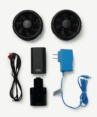 【ATTENTION】 This product is currently restricted from being shipped outside Japan. We are in the process of adjusting our shipping methods, so we kindly ask that you refrain from purchasing until this notice is removed. This is a dedicated fan kit for air-conditioned clothing by Kuchofuku Co., Ltd. Please attach and wear it with items labeled [ Wear with fan ] on the product page. [ Kit Contents ] ・Battery (NANOBT2BK) ・Two fans (FAN2300b) ・Cable (RD9261)* ・Adapter (LIACR) ・Battery holder (NANOHLBK) ・Battery drop prevention strap