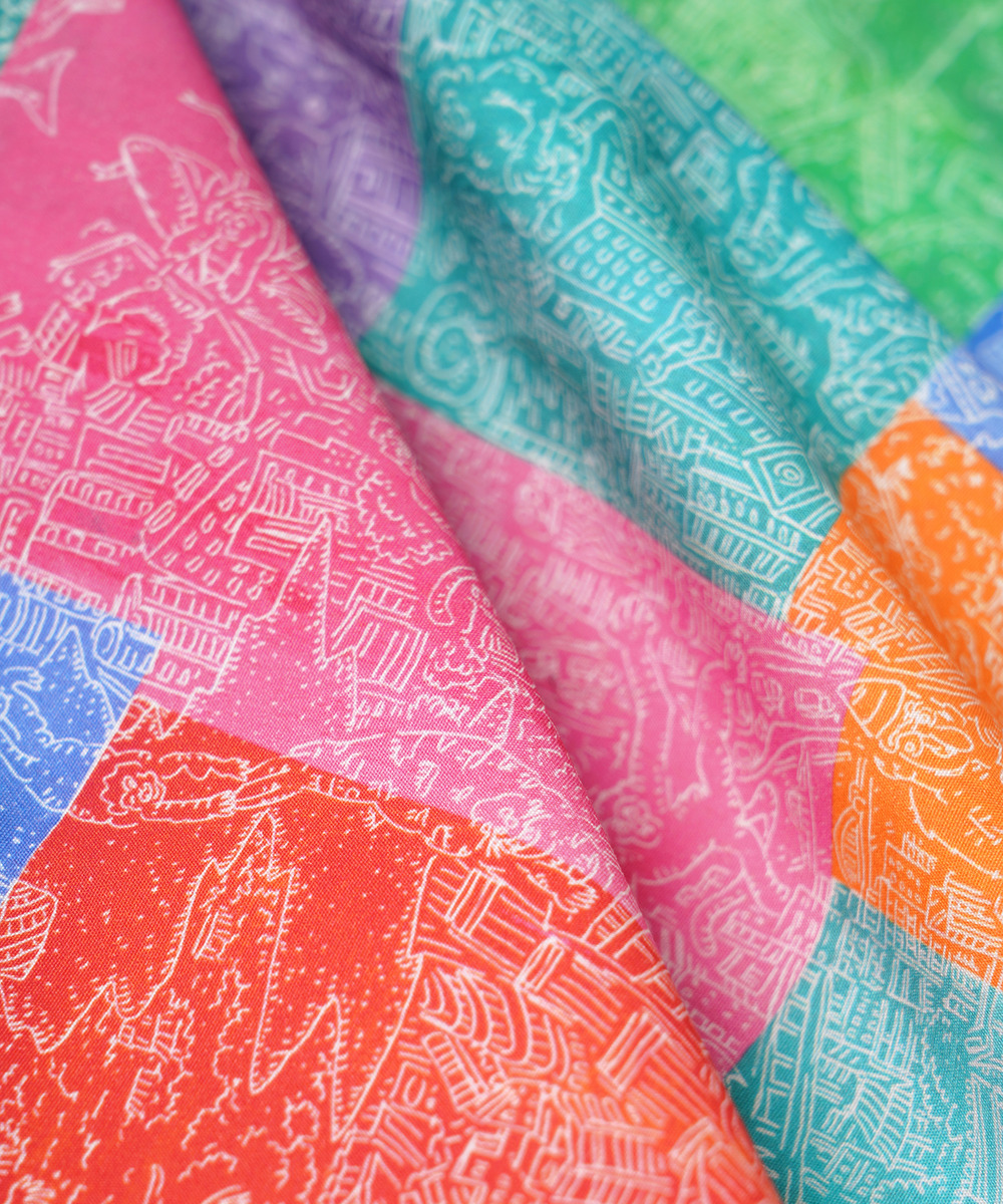 本商品は作家のアート作品をテキスタイルとして使用しているため、柄の配置や見え方が一点ごとに異なります。
