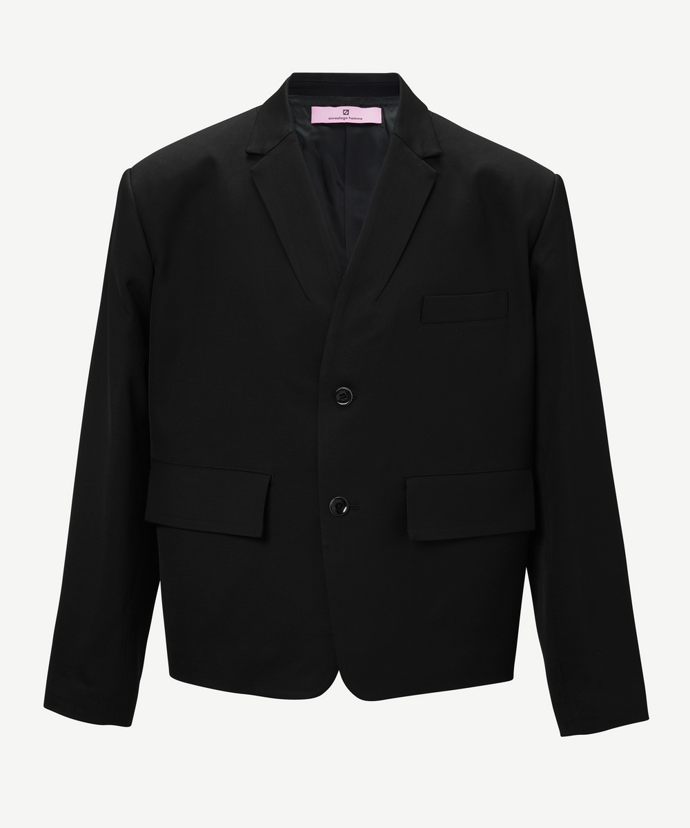 anrealage homme ラペルが身頃に自然に馴染んでいく"フェードラペル"が特徴的なテーラードJacket。 短めの丈とボックスシルエットが、洗練された印象を与えます。 生地はウールとヴィスコース素材を使用し、滑らかな質感が特徴です。 裏地付き。 シンプルで合わせるアイテムを選ばない万能さを持ちながら、細部にデザイン性が感じられる一着。 日常からフォーマルなスタイリングまで幅広く活躍します。 同素材のハイウエストボトムとセットアップでの着用もおすすめです。