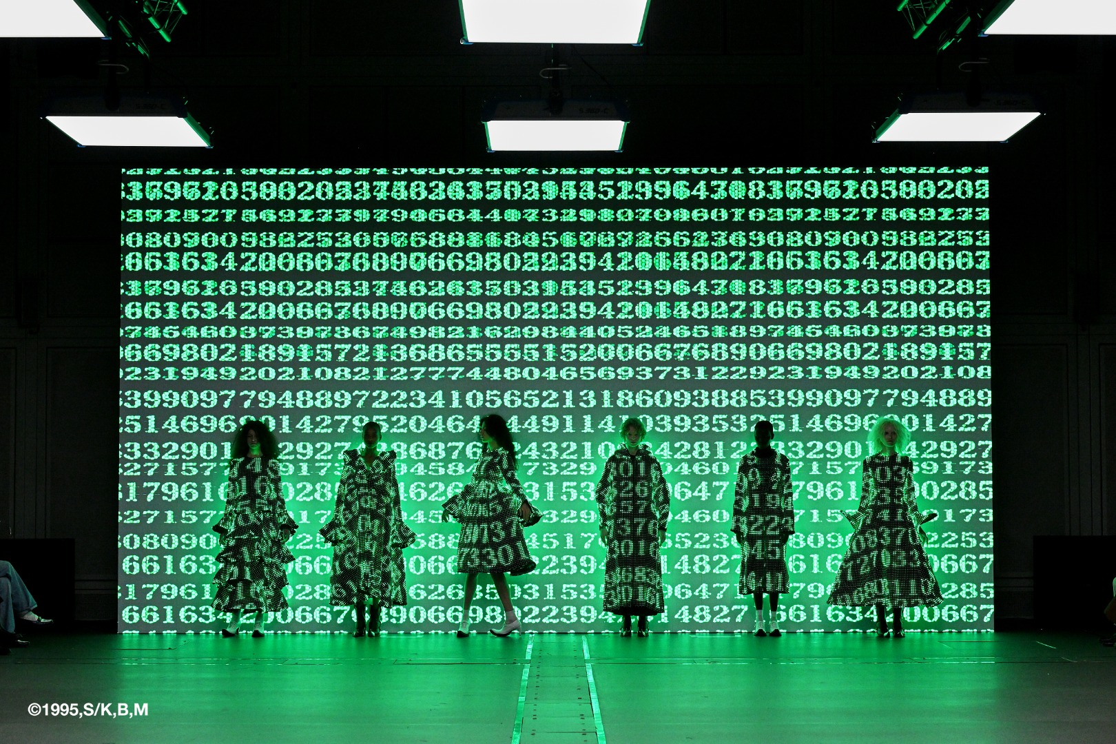 作中に登場する“光学迷彩”に着想を得て、周囲の環境と同化し、輪郭を失いながら存在する身体を、LED技術を用いた衣服として現実に実装。服は身体の輪郭を与えるものではなく、むしろ輪郭を消し、存在そのものを揺らがせる装置として提示されました。