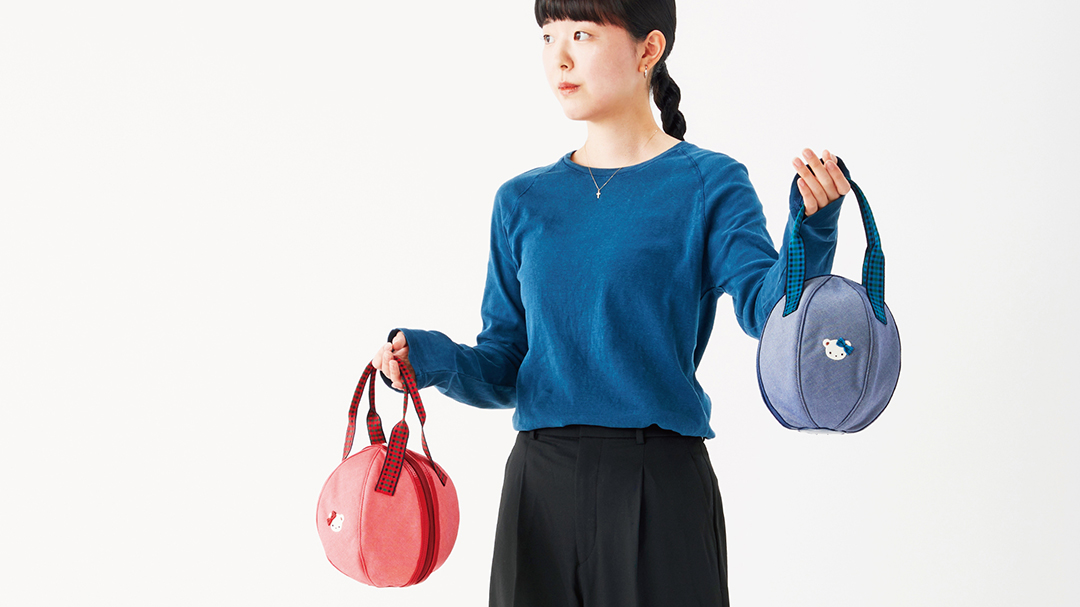 アンリアレイジ定番のボールモチーフからインスピレーションを受けた、ころんとした丸いカタチのボールBAG。ワンポイントのクマちゃんは一つ一つ丁寧に手手芸で作りました。本体はデニムBAGと同じ平デニム生地を、持ち手はファミリアオリジナルチェックを使用しています。