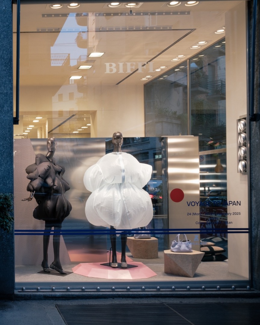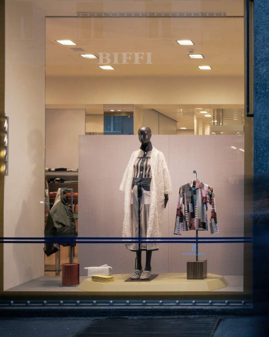 イタリア ミラノにあるセレクトショップ BIFFI BOUTIQUES にて、ANREALAGE SPRING/SUMMER 2025 COLLECTION “ WIND ” で発表されたショーピースがディスプレイされました。