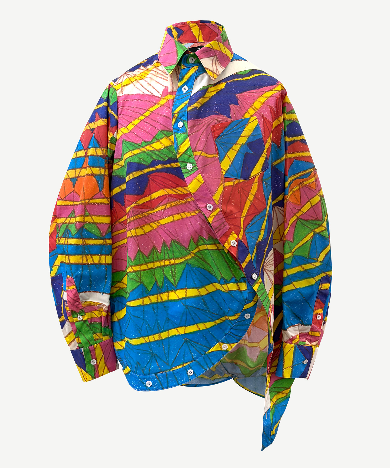 ANREALAGE SPRING/SUMMER 2026 COLLECTION “♥”にて発表されたパワースリーブのクロップドシャツ。