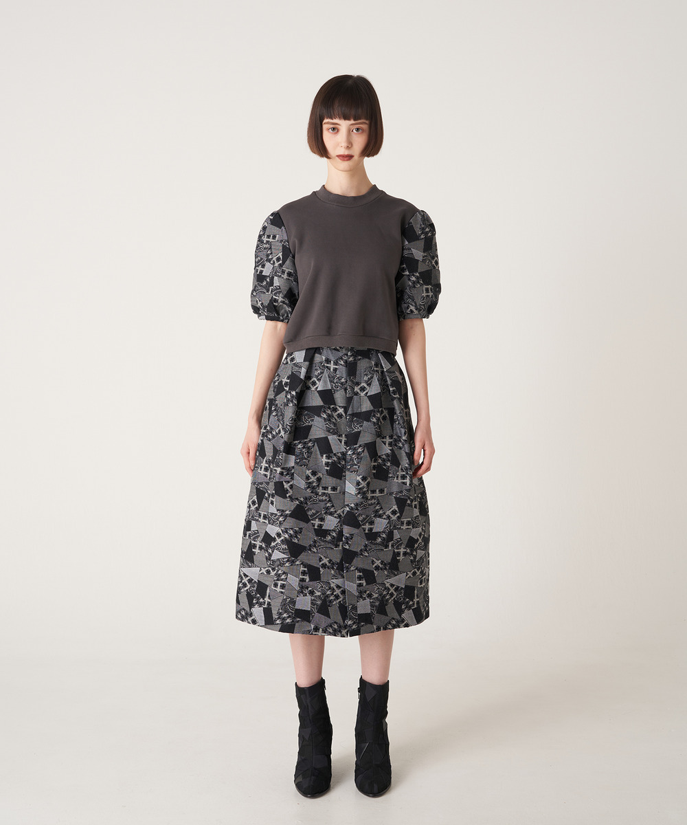 パッチワークジャガードのテキスタイルを使用したSkirt。
