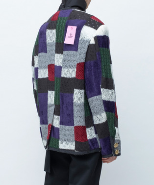 anrealage homme anrealage homme 2024-25 f/w collection で発表されたニットJacket。 ANREALAGE 2007 A/W COLLECTIONにて登場したHARUKAHARU KNIT CARDIGANから着想し、現在のデザインや技術を取り入れて再構築されたシリーズ。 繊細で柔らかい印象のニットパッチワーク生地に反発する裏地を入れてカチッとしたシルエットに仕上げています。 樹脂に閉じ込められた金ボタンもポイント。樹脂ボタンには、「時間を閉じ込める」「原風景を持ち歩く」という意味合いがあり、アンリアレイジの象徴的なアイテムの一つです。 素材には、綿・シルク・ポリエステルラメ・モヘヤ・レーヨンナイロンモールなど、異なる素材の編み地を組み合わせることで、異素材感のある風合いを演出しています。 3種類のオリジナル地柄のテープ地を組み合わせ、複雑にパッチワーク縫製された編み地は、国内の職人によって時間をかけて丁寧に仕上げられています。 この編み地を布帛工場で縫製することにより、しっかりとした印象のJacketが完成しています。 ANREALAGE 2007 A/W COLLECTION “HARUKAHARU-OVER THE RAINBOW-” テーマはアンリアレイジの音楽を手掛ける杉原一平のピアノ曲「遙か晴る」。 “遙かなる春”と“遙かなる原風景はきっと晴れている”という意味が込められている。原風景であるパッチワークと過剰な手業によりつくられた服を発表した。