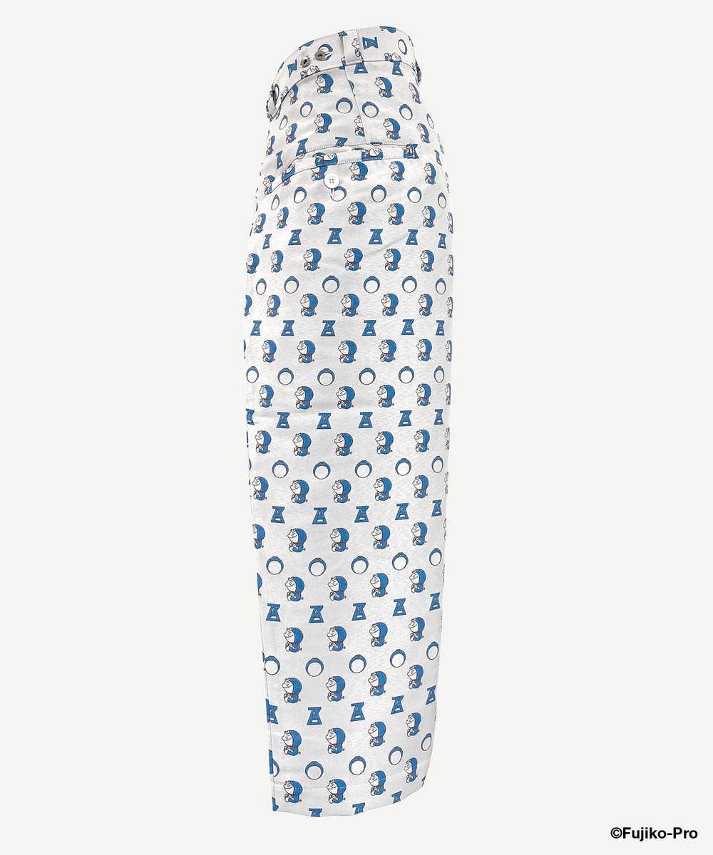 DORAEMON × ANREALAGE 日常と非日常を行き来するデザインを発信するANREALAGEより、藤子・F・不二雄作品に影響を受けた「すこし・ふしぎ」なコレクションが新登場。 ドラえもんをモチーフにしたジャガード織のテキスタイルで仕立てられたラップPants。 拡大されたウエストのあまり部分を体に沿ってラッピングすることで特徴的なシルエットになります。 やや肉厚でハリがある生地感と、ジャガード織ならではの微光沢もポイントです。 ドラえもんが眺めるのは、ドラえもんカラーの球体専用のシャツ。球体が浮遊する姿は22世紀の日常を想起させる。丸い体にピッタリの服!?