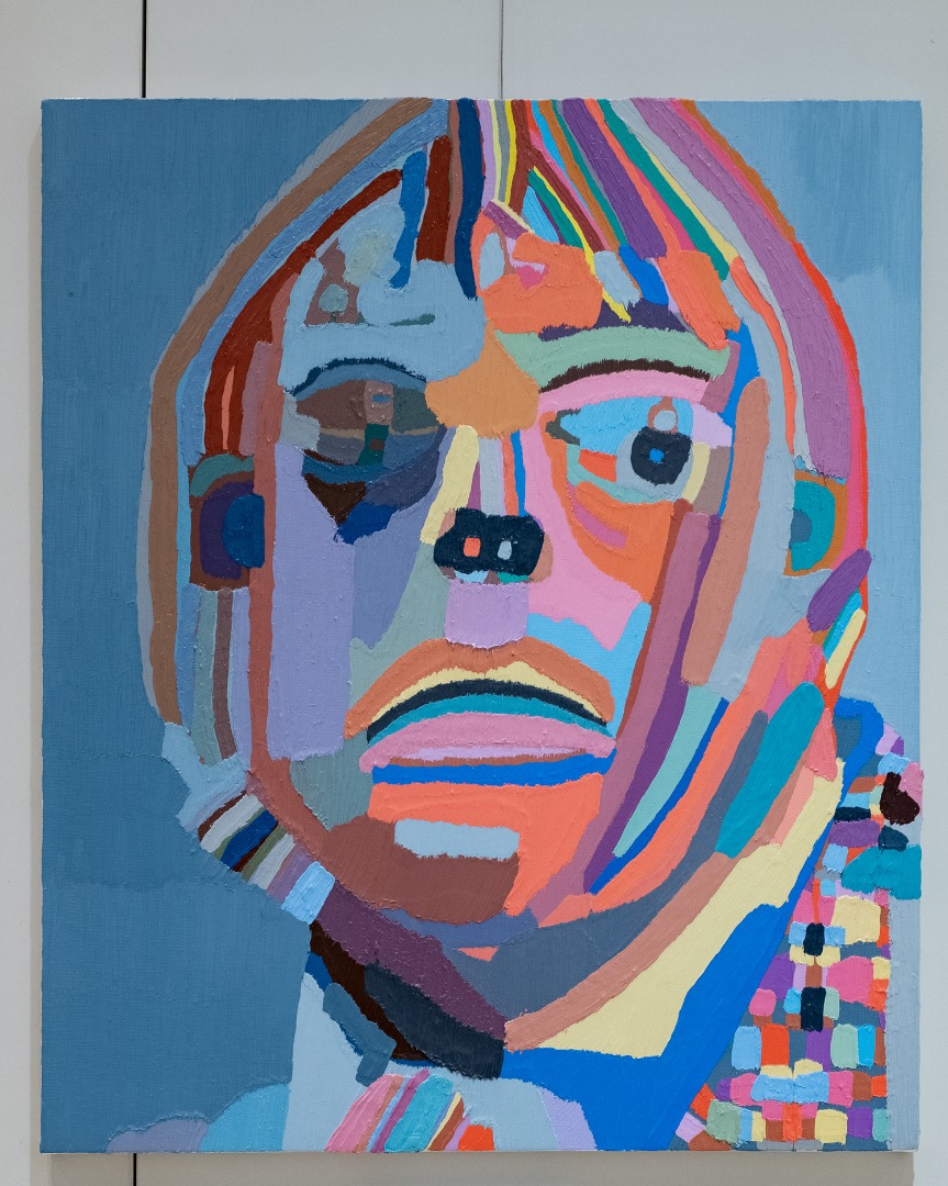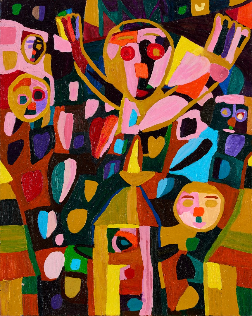 美術ワークショップに参加してから、日常的にアートに親しむようになる。隙間なく埋める極彩色の抽象画は、見続けていると立体的に見える瞬間があり、多くの人を惹きつける。