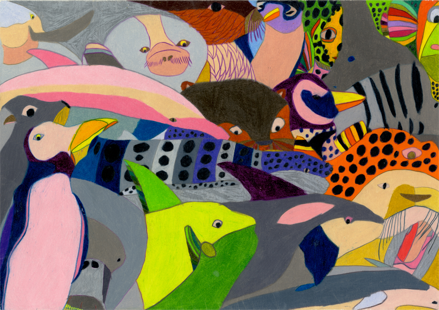 1995年生まれ。和歌山県在住。動物が好きで、水族館や動物園に行って、インスピレーションを受けている。頭の中で思い描く世界を下描きなしで、思いのまま自由に描くことで生き生きとした作品に仕上がる。