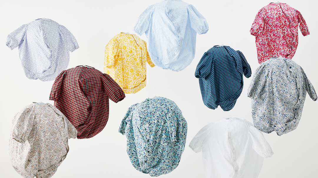 アンリアレイジ定番のボールシャツが、ベビー・子ども服として登場。生まれたときから3歳まで、ワンサイズで長く着用できるボール型の新しいカタチの子ども服。新生児期はベビー服として、大きくなったらONEPIECEやシャツとして、成長に合わせて異なるスタイリングをお楽しみいただけます。ファミリアオリジナルのテキスタイルやカラフルなリバティ柄など、計10種類のカラーが登場します。職人が1点ずつ丁寧に縫い上げたMADE IN JAPANの逸品です。